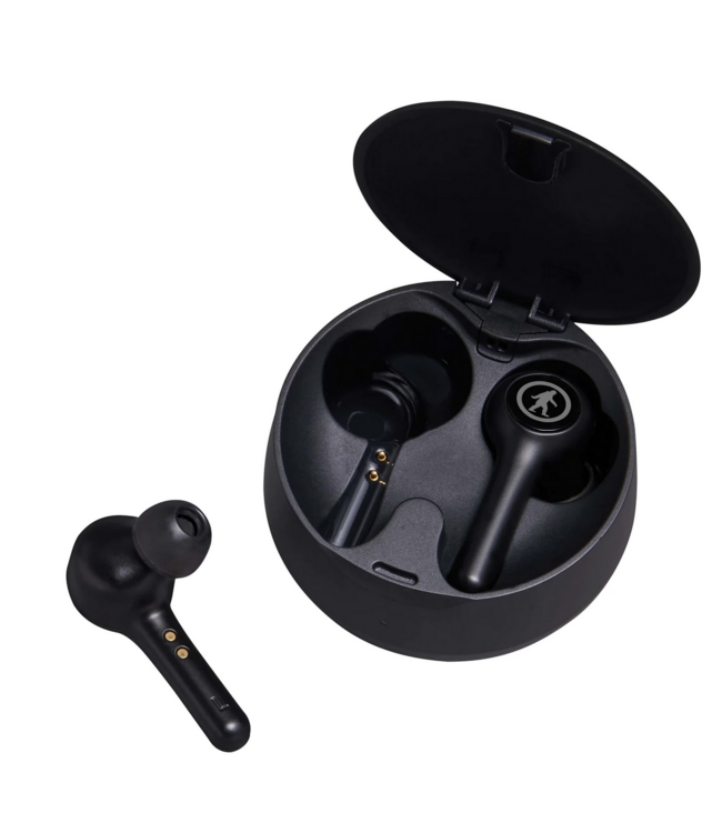This is the wireless age, baby, and Ravens are the classic style wireless earbuds. A single charge means you can listen for 8 hours at 50% volume, then re-charge them with the case four more times. For the math-challenged, that’s 40 hours total.